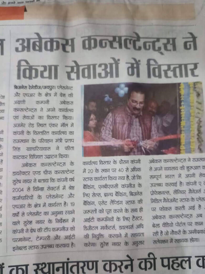 Abacus Consultants added another feather in its cap with the announcement of the opening of its new office at Ajmer Road, Jaipur.